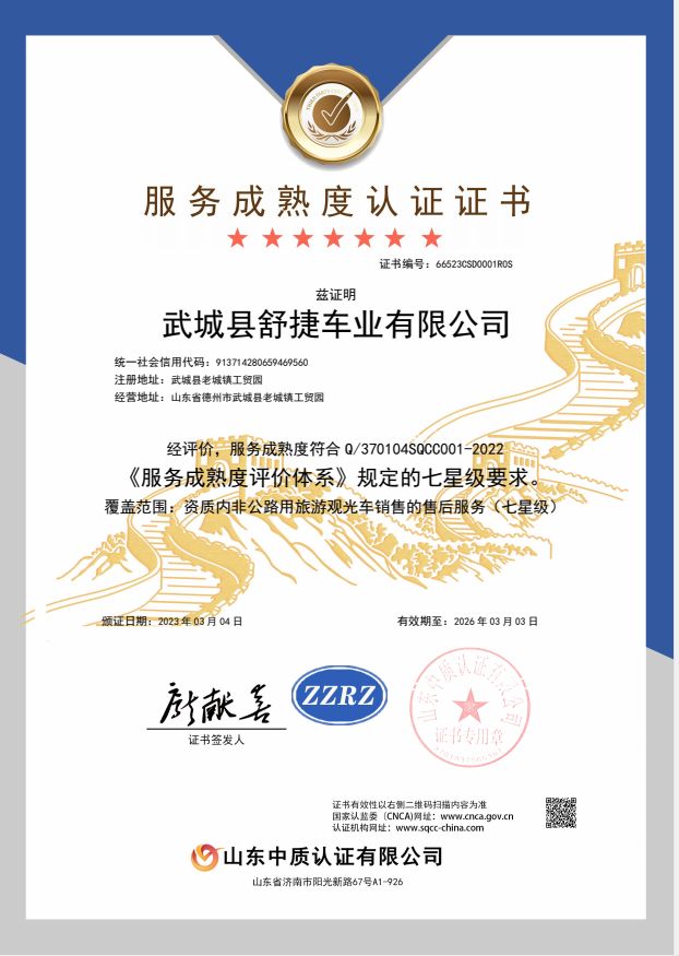 Wucheng Shujie Vehicle Industry Co., Ltd. adheres to the business philosophy of "quality first, integrity double", always insisting that the interests of customers are our interests. The company independently develops and produces the "electric sightseeing patrol vehicle" with excellent technical strength, and has obtained multiple patents. "Hengwei electric sightseeing patrol vehicle" has become the most well-known and influential brand in the industry.